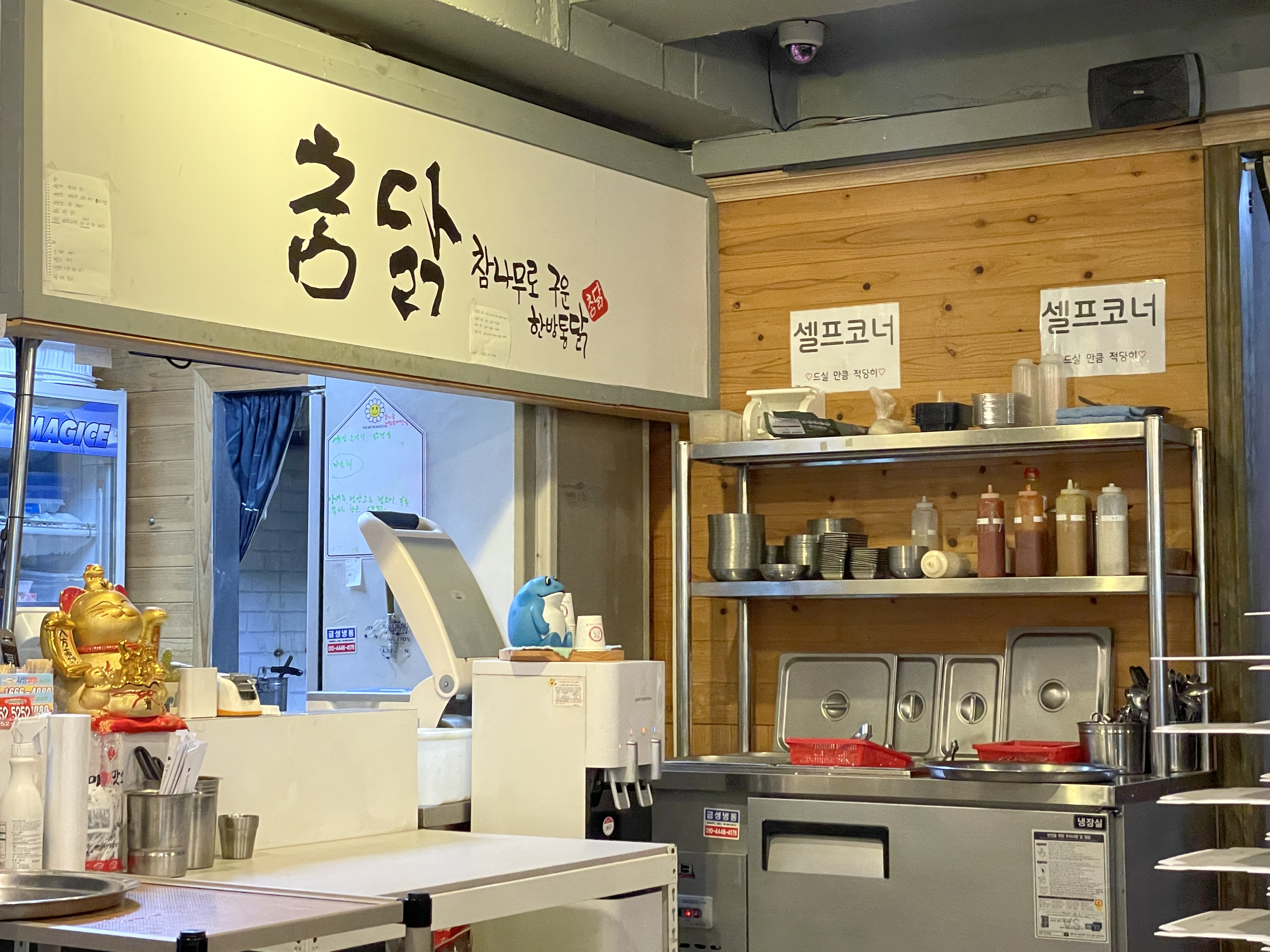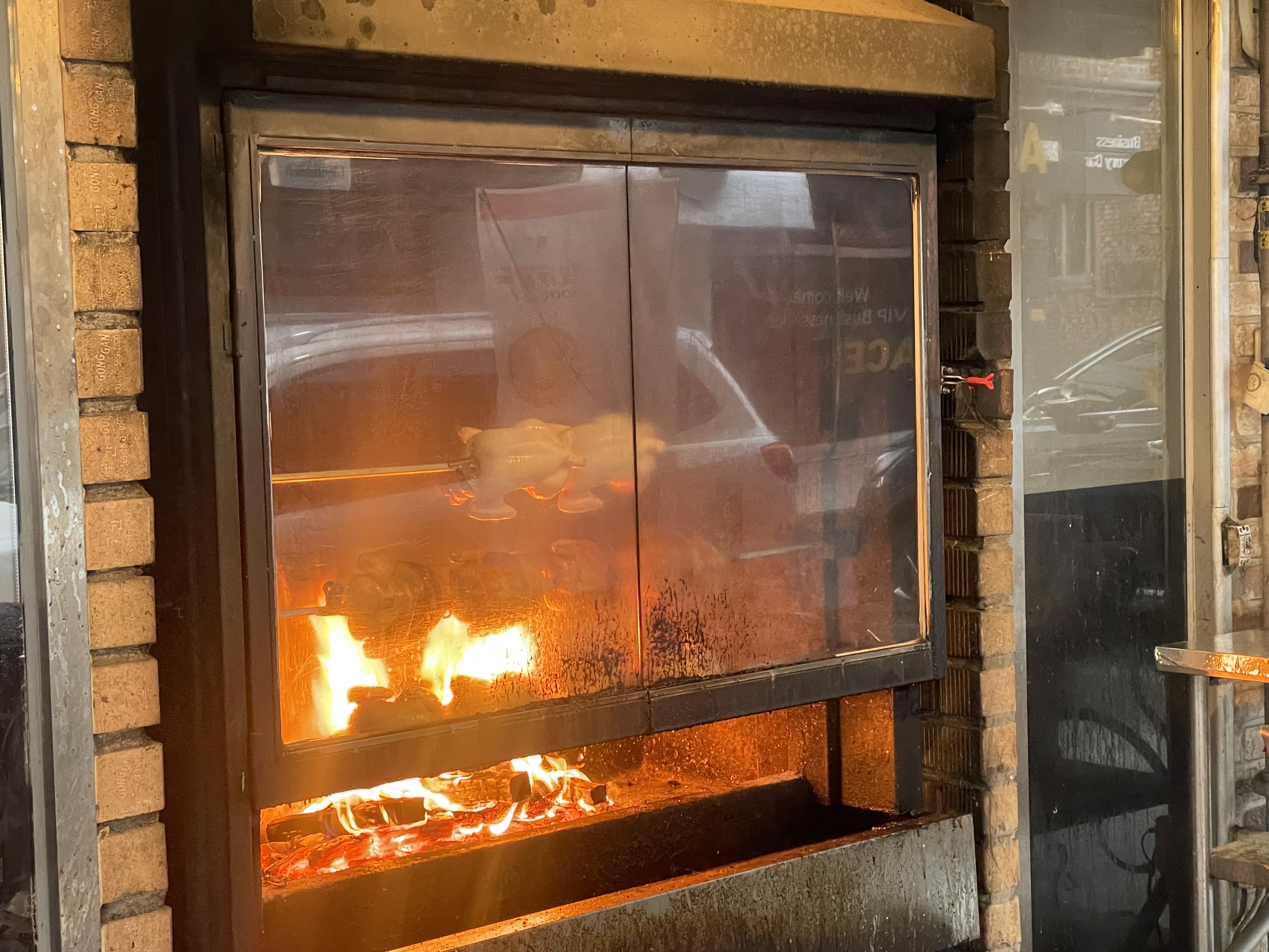 외부에는 닭들이 돌아가며 구워지고 있었는데, 군침이 싹 돌았습니다..